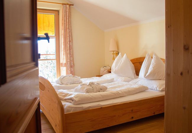 Comfortable small suite with country-style furnishings, separate living- and bedrooms on the top floor, with south balcony, with shower, WC, hairdryer, beauty items, bathrobes, flatscreen satellite TV, telephone, sofa-bed for 1 - 2 children.