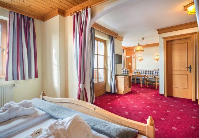 Geräumige Junior - Suiten im Landhausstil mit seperatem Wohnbereich, Süd- oder Westbalkon, Bad oder Dusche, WC, Föhn, Kosmetikartikel, Bademäntel, Flat-Sat-TV, Telefon, Schlafcouch für 1 - 2 Kinder.